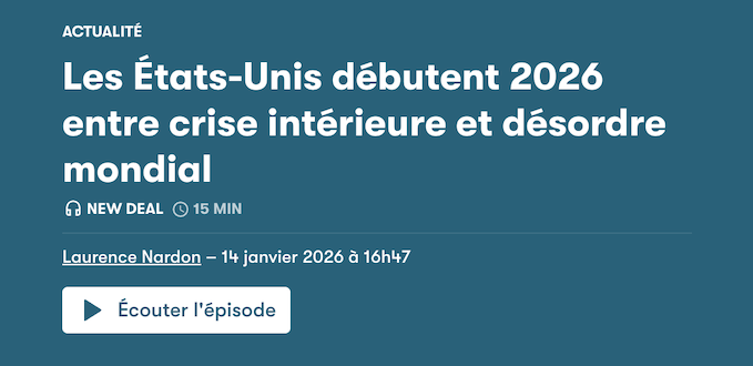 Si vous avez passé la journée à la douaneMercosur : les députés rejettent les motions de censure déposées par les Insoumis et le RN (la motion LFI a tout de même récolté 256 voix sur les 288 nécessaires pour faire chuter le gouvernement) Iran : les US font évacuer une partie de leurs bases au Moyen-Orient alors que l'Iran promet de riposter en cas d'attaque (NDLR : au moins 3 000 manifestants seraient morts ces derniers jours) Groenland : la France annonce l'ouverture d'un consulat le 6 février et prévient que les menaces de Trump "doivent désormais être prises très au sérieux" (Lecornu) et que l'annexion aurait des "conséquences en cascade inédites" (Macron) |